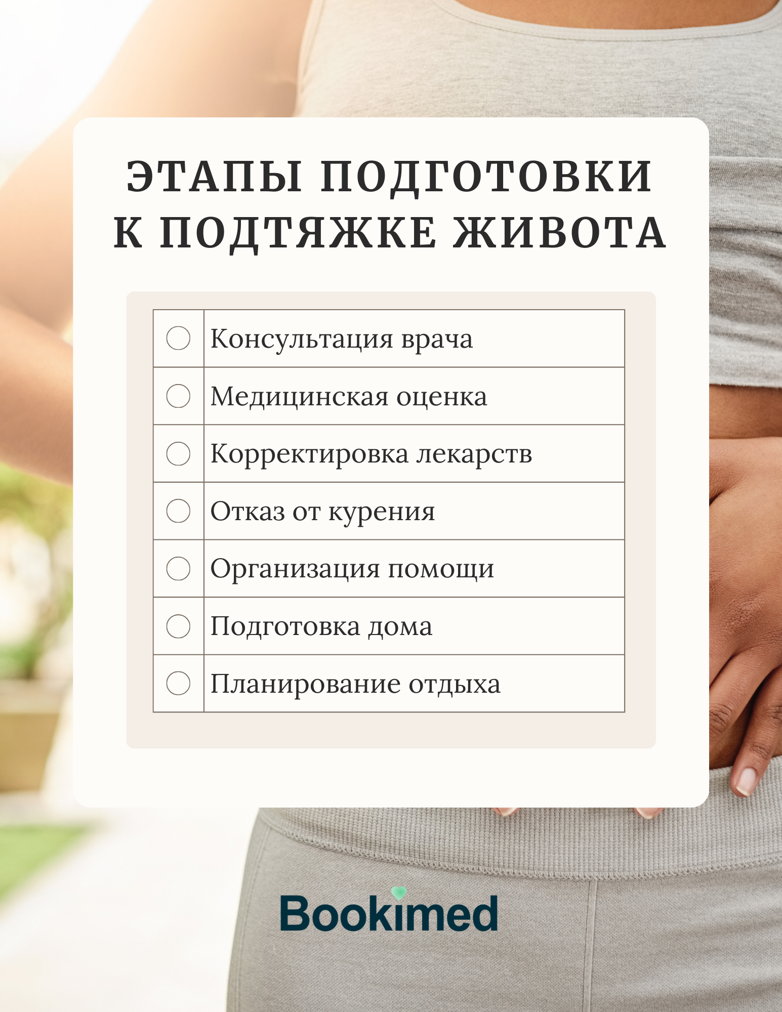 Подготовка к подтяжке живота включает несколько этапов, которые обеспечивают спокойную процедуру и правильное заживление. Вот как нужно готовиться к операции: